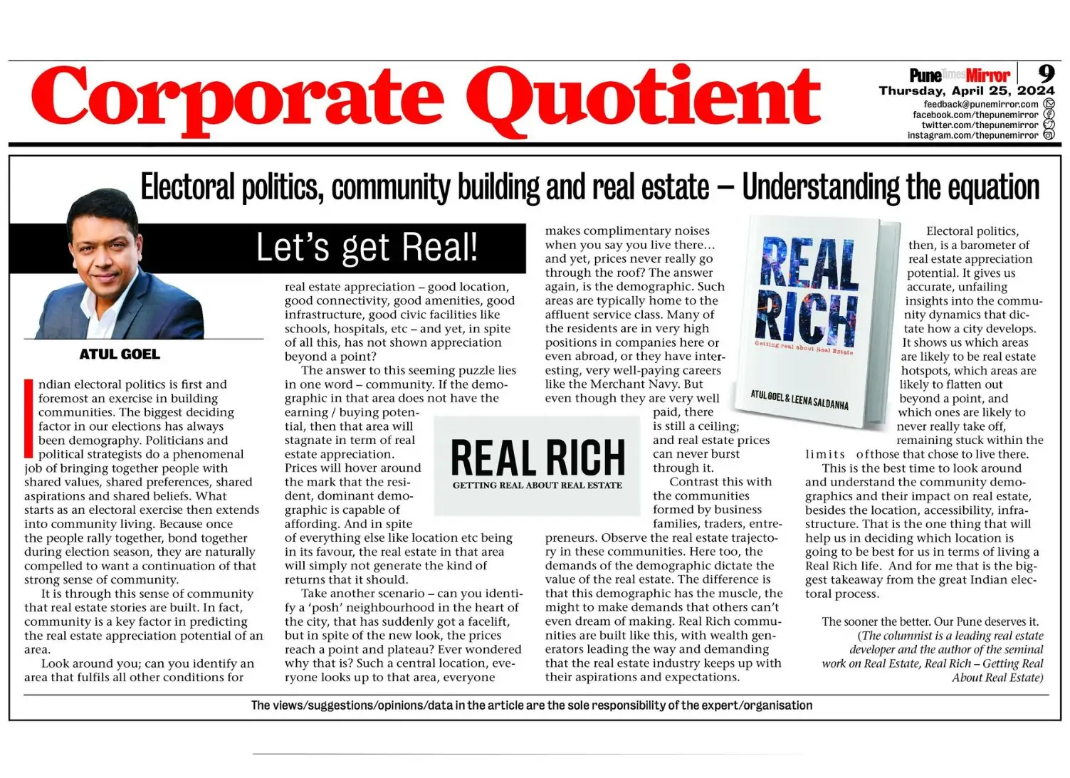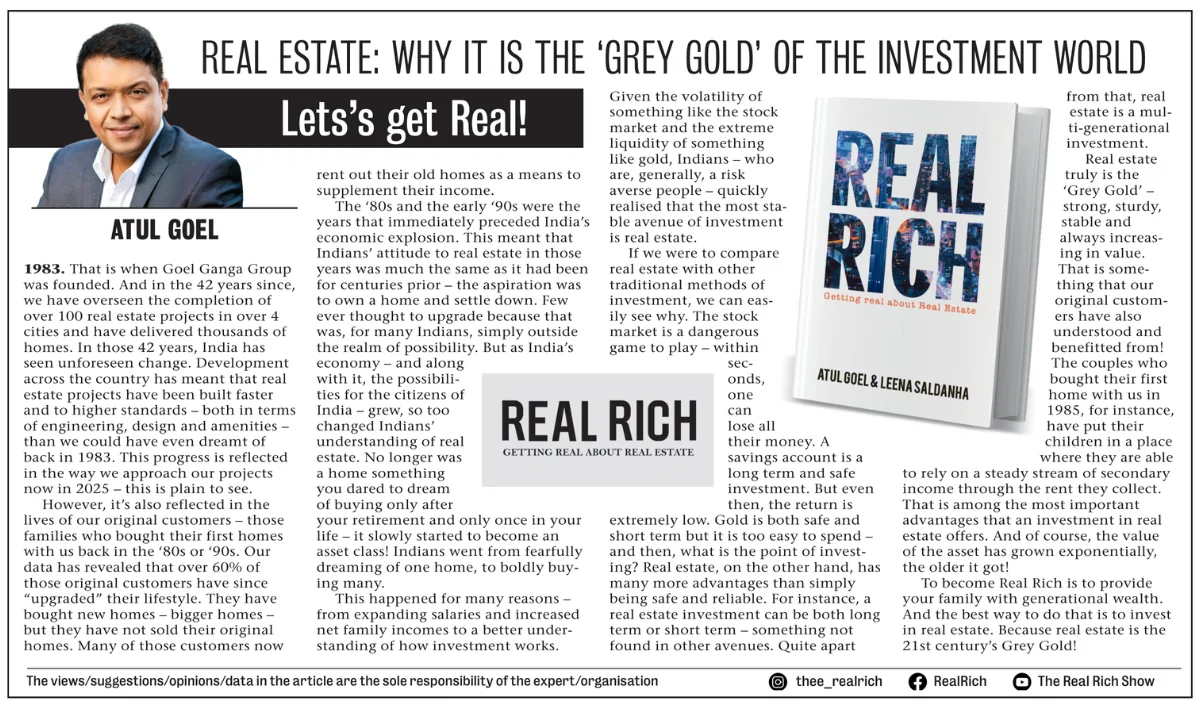 The mind behind the book 'Real Rich' - Atul Goel, MD – Goel Ganga Group